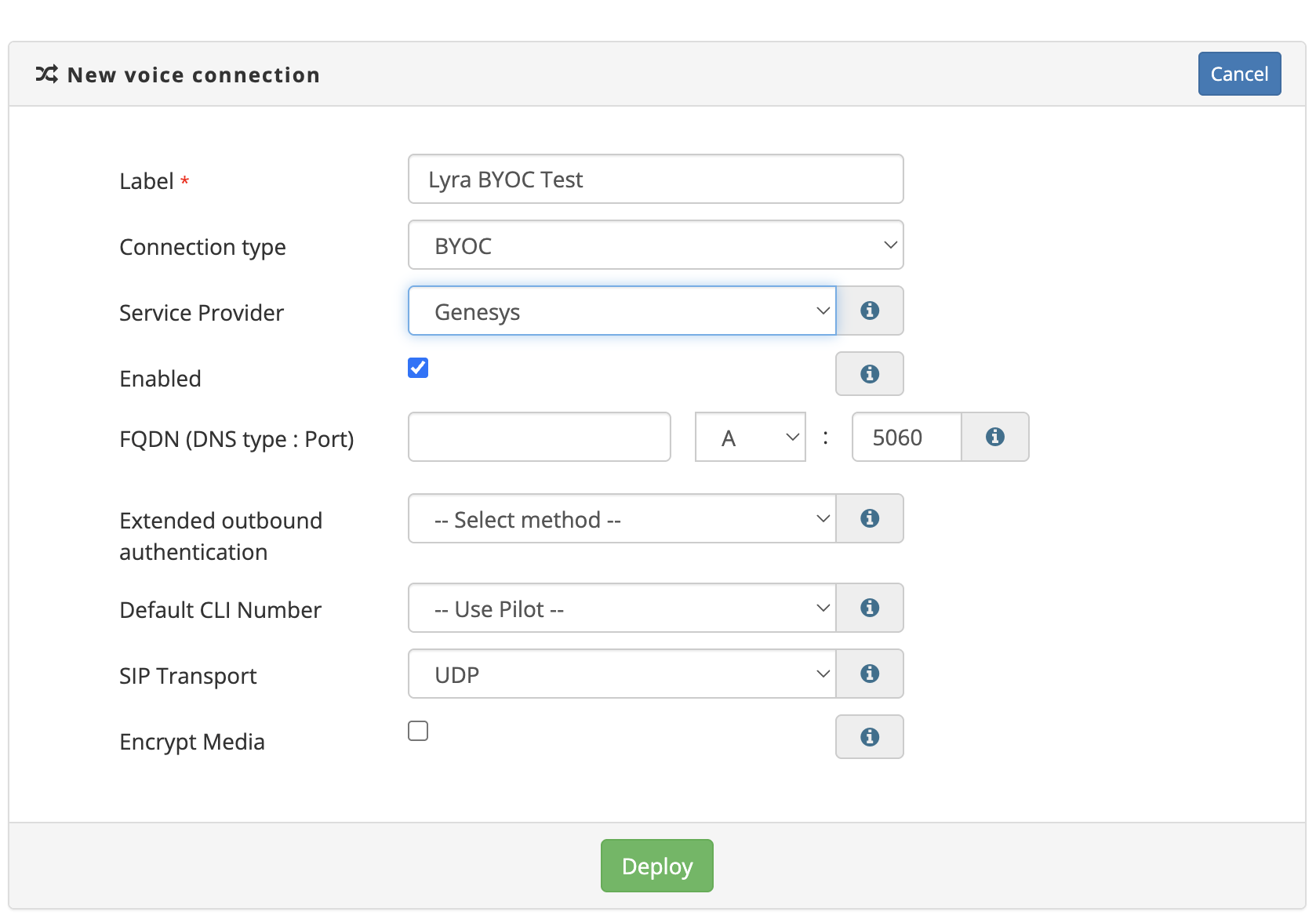 Enabled: Turns the BYOC connection on or off.