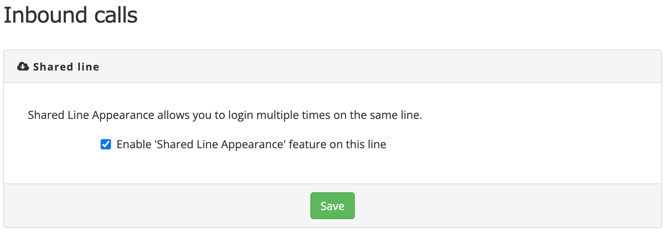 Navigate to Cloud PBX → Inbound Calls → Share Line